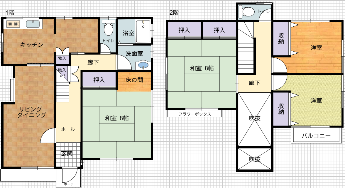 - 1階:69.38㎡ 2階:44.85㎡ 延べ床面積:114.23㎡(34.55坪)